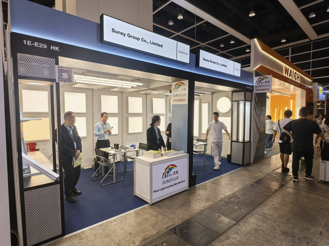 Sunsylux got a very good experience at the Hong Kong Lighting Fair 2025 Autumn Edition. We exhibit Casambi control system, modular LED panel light, surface mounted LED panel, full spectrum Ra98 UGR16 LED panel, edge-lit 170lm/w LED panel, back-lit 200lm/w LED panel, IP65 LED panel, cleanroom light, LED linear light, LED tri-proof light and many other popular solutions.